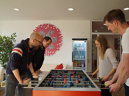 Wir sind ein Team und als solches unterstützen wir einander. Wir lieben den Austausch mit unseren Kollegen und Kolleginnen. Klar, ein Feierabendgetränk auf unserer Terrasse ist auch immer drin.
