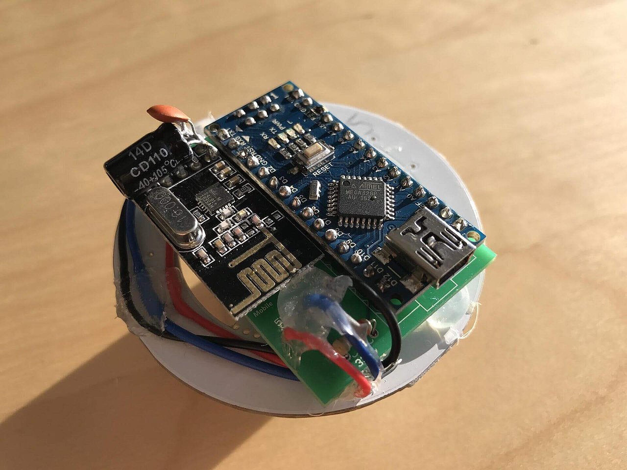In order to achieve reasonable pricing with a highly scalable tool, we decided to use Raspberry Pi, as mentioned above, to serve as a hub and the Arduino Nano board as the controller for Neopixel matrix. For wireless communication, we used a NRF24L01+ module, since it can be easily incorporated in both the hub and the endpoints.