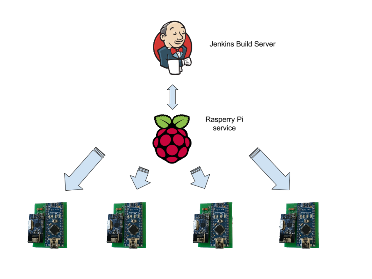 The project idea is really simple. The central element of the system is a Raspberry Pi computer that periodically asks Jenkins CI about the status of projects. Each endpoint, an indicator device, has a unique ID assigned. The Raspberry Pi maps the project’s name to the proper device ID, and then it broadcasts the build status wirelessly.