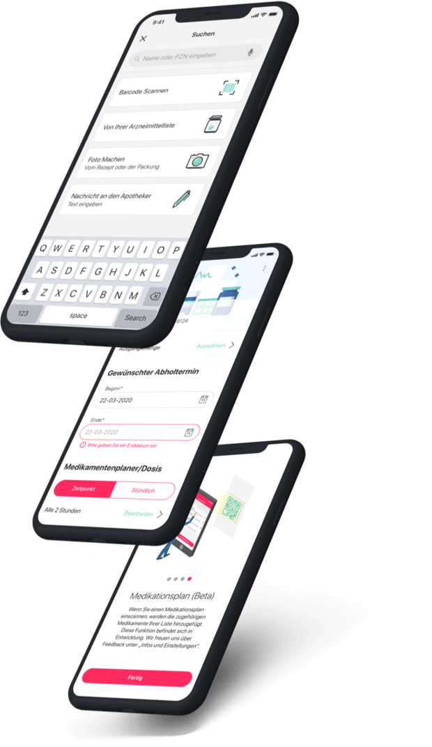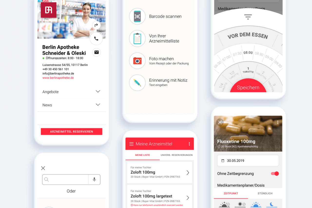 Module wie Medikamentenscanner, Wechselwirkungscheck, Elixier-Magazin, Reservierungs- und Erinnerungsfunktionen wählbar
