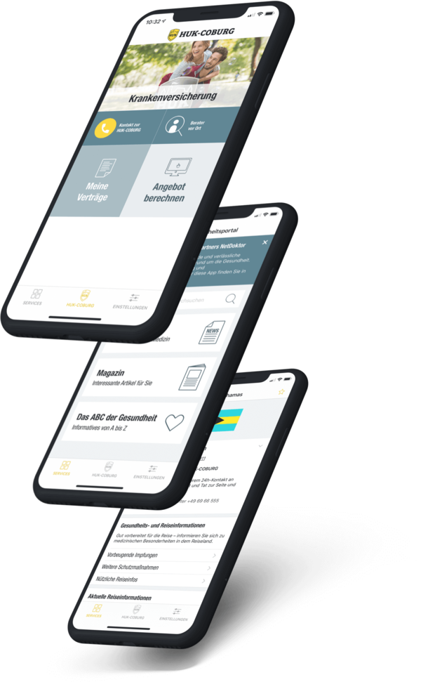 Die HUK Auslandsreise-App verbindet Versicherungsservices der HUK-COBURG mit wichtigen Gesundheitsinformationen zum Reiseland in einer App. So hat der Kunde u.a. Impfempfehlungen, Checklisten und Notrufnummern immer dabei. Die GPS-Ortungsfunktion bietet zudem schnelle Hilfe im Ernstfall. Beim Design und der Umsetzung steht die schnelle und einfache Nutzerführung im Vordergrund. Die HUK-COBURG hat die Auslandsreise-Features um den Premiumservice „Online-Sprechstunde“ erweitert. Mithilfe der App können Versicherte beispielsweise Fragen zu Gesundheitsthemen oder Krankheitsbildern per Video oder Live-Chat stellen. Umgesetzt ist die App als native App für iOS und Android, die auf Smartphone und Tablet gleichermaßen funktioniert.
