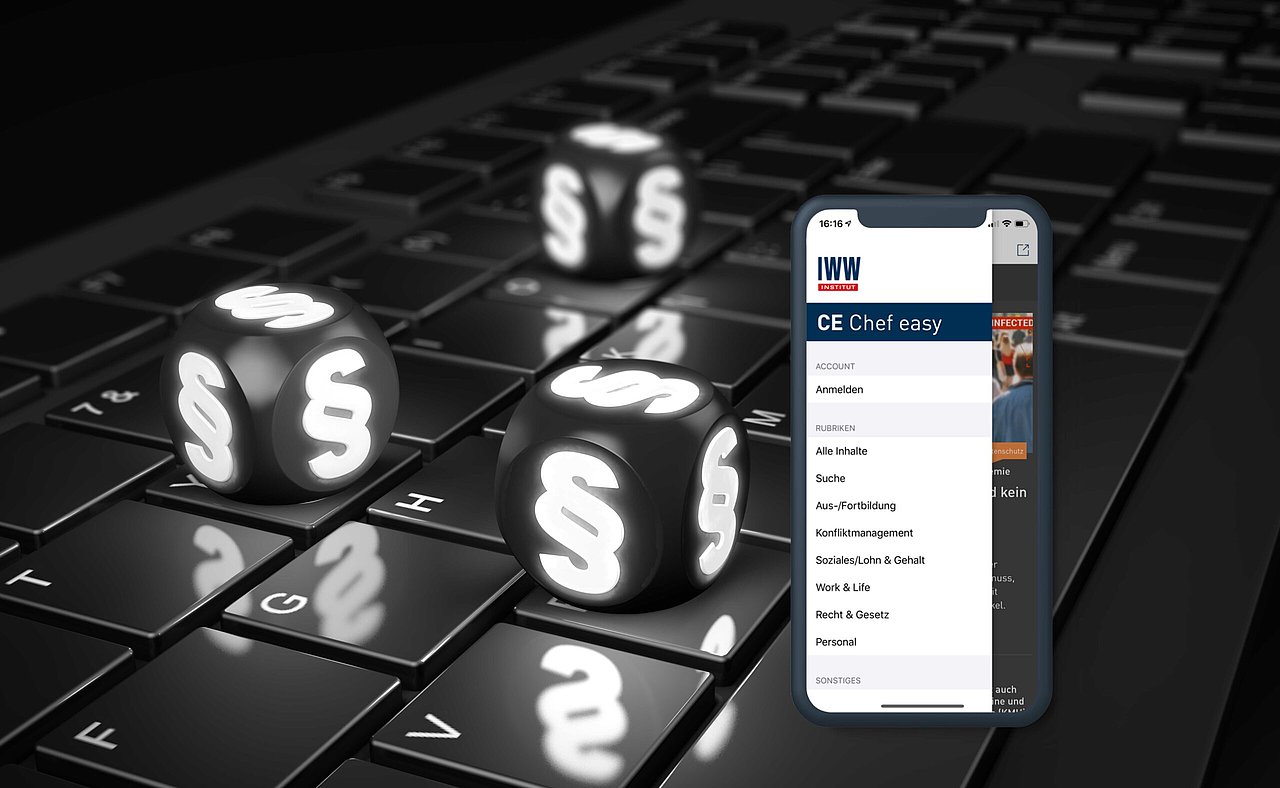 Die „CE Chef easy“ App bringt alle Informationen von der Website aufs Smartphone oder Tablet und bietet zugleich mobile Zusatzfunktionen wie Push-Notifications und eine native Navigation mit Offline Modus. Praxishilfen wie Checklisten, Musterformulierungen und Verträge aus dem Arbeitsrecht können direkt aus der App geladen werden. So hat der Nutzer alle relevanten Informationen auch unterwegs zur Hand.