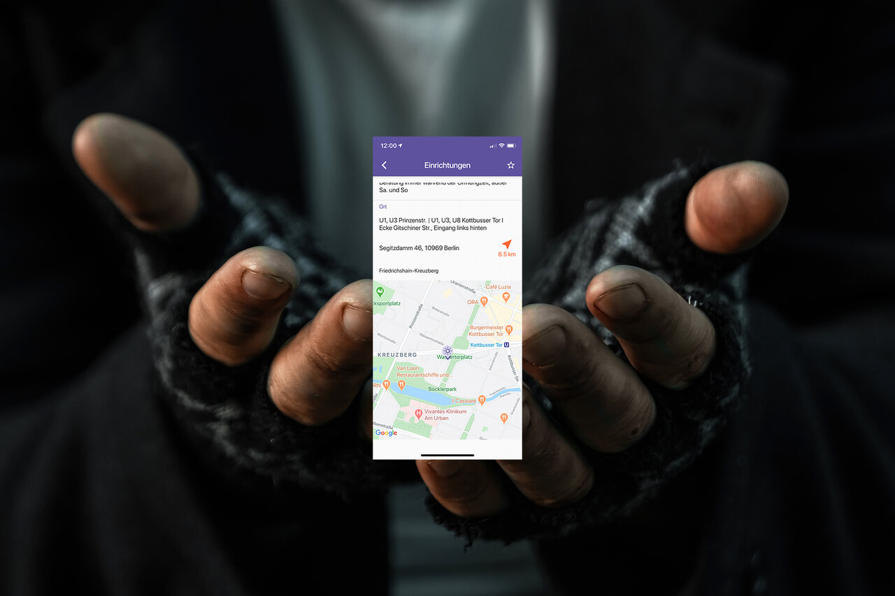 Um die App effizient und plattformunabhängig für iOS und Android gleichermaßen zu entwickeln, wurde das Google Framework Flutter eingesetzt. Über eine interaktive Karte sind nahegelegene Einrichtungen noch leichter zu finden und Informationen wie Öffnungszeiten, Angebote und Kontaktinformationen abrufbar. Mit der erweiterten Suche und Filterfunktion können Helfer und Betroffene Angebote auf Basis individueller Bedürfnisse wie beispielsweise Schlafen, Essen oder Duschen gezielt finden.