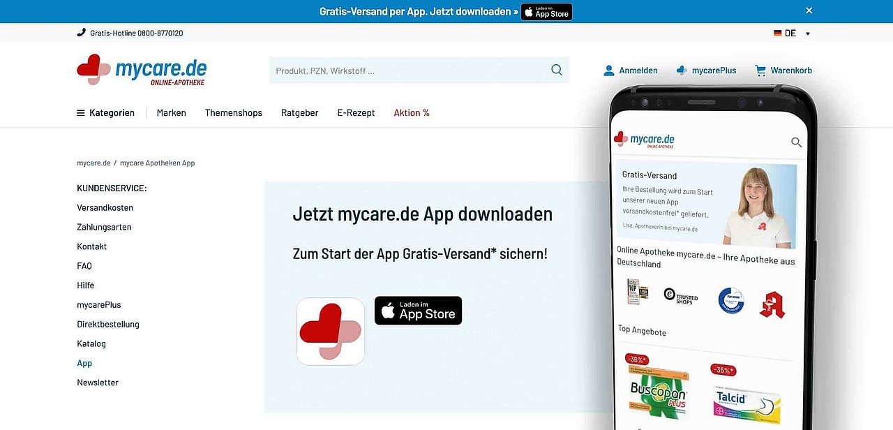myCare gehört zu den größten Versandapotheken in Deutschland und bietet über 90.000 Produkte aus dem medizinischen und kosmetischen Bereich. Bestellungen können über den Onlineshop, der auch als mobile Website besteht, erfolgen.